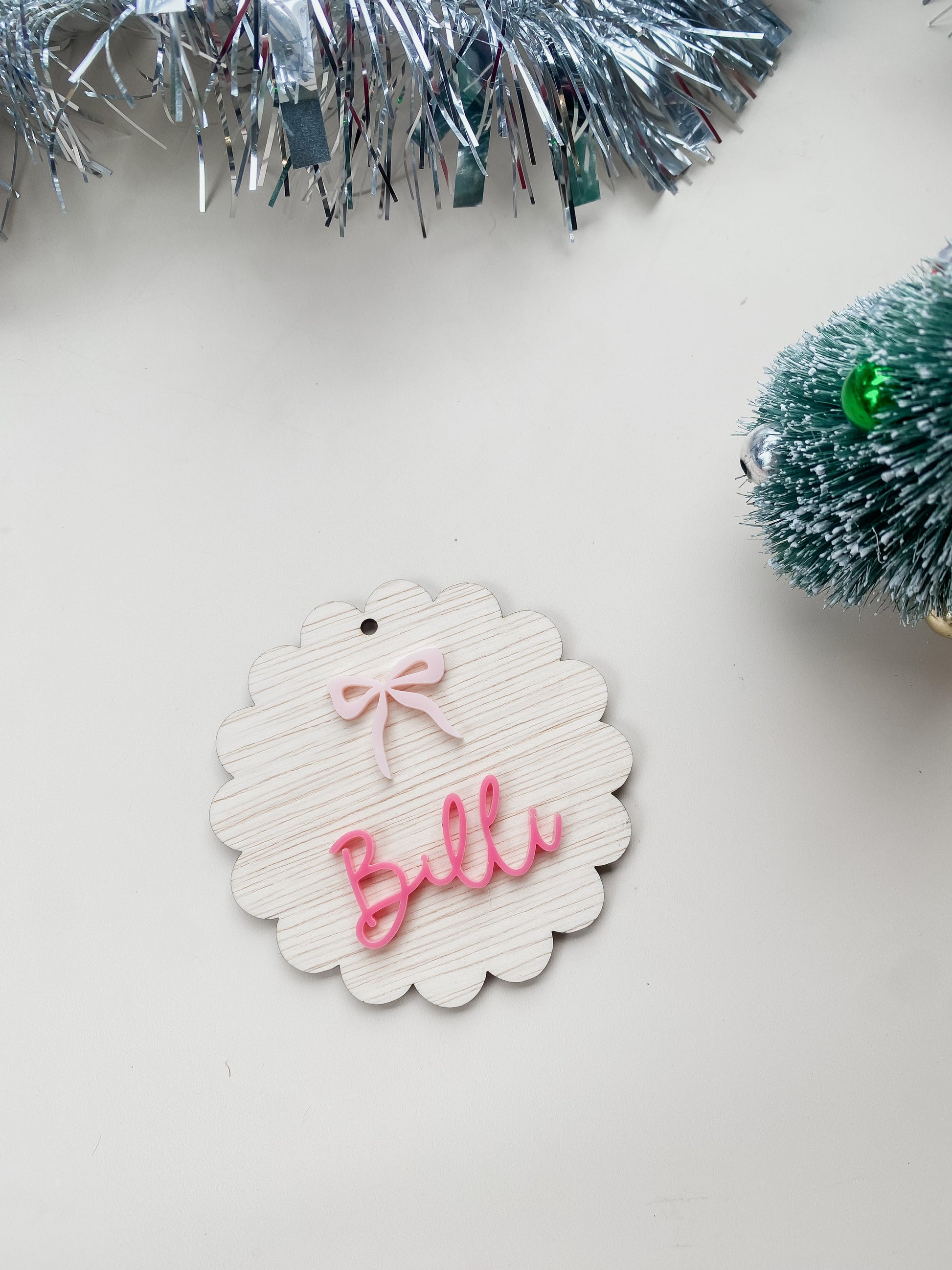 Add a sweet little personalised touch your Christmas tree or your presents with our Christmas Acrylic Name Bauble.