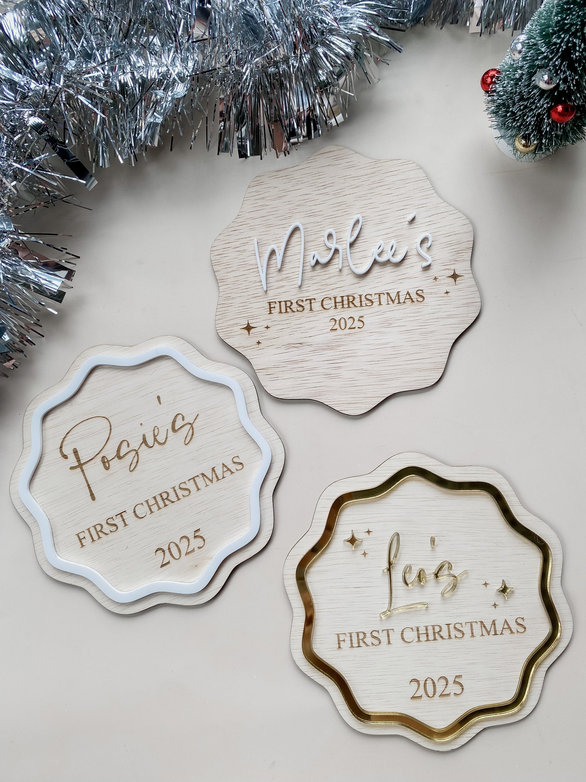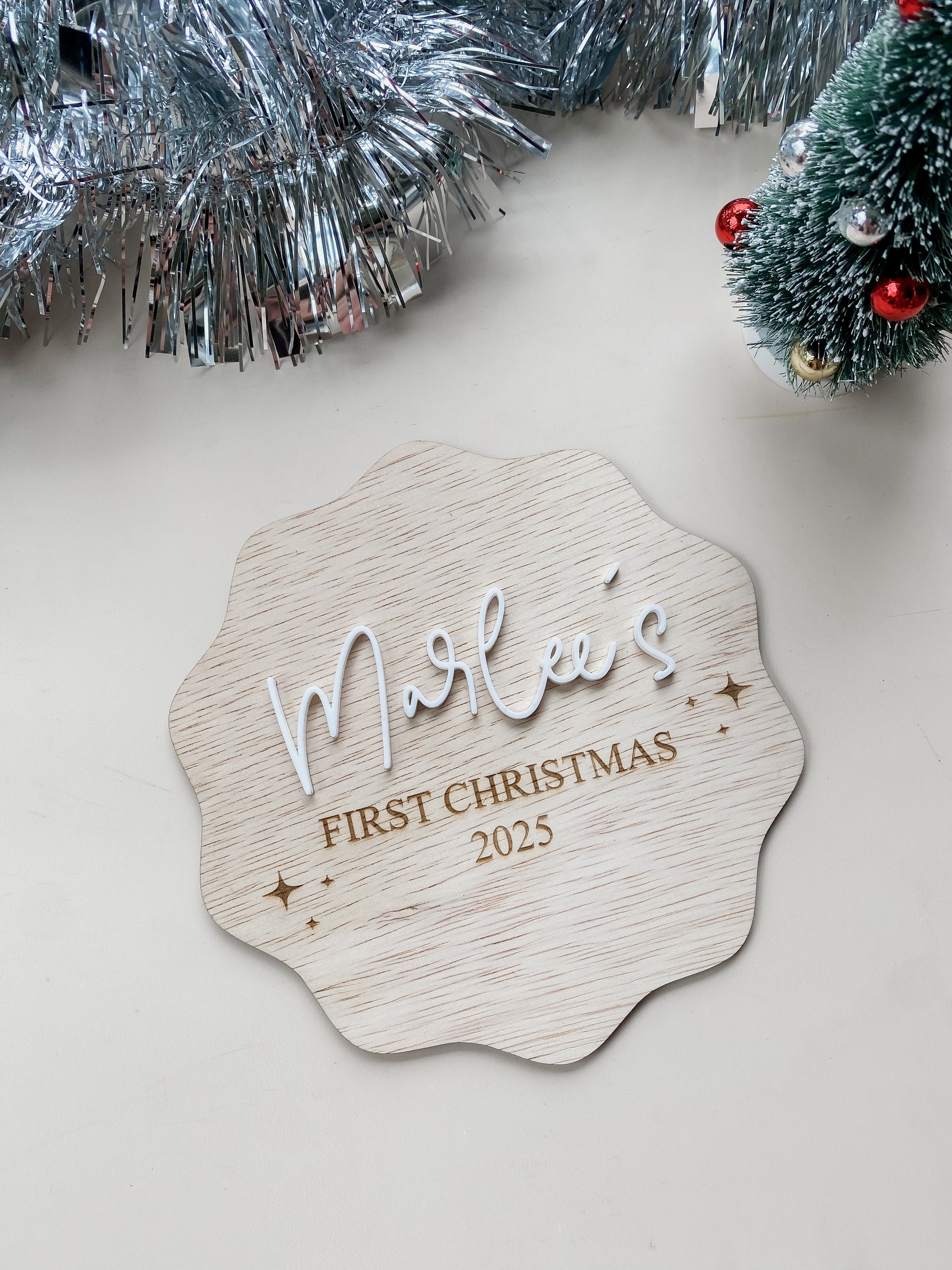 -Customise your My First Christmas sign by choosing your preferred shape, the colour of your little one's name, and the colour of the border.